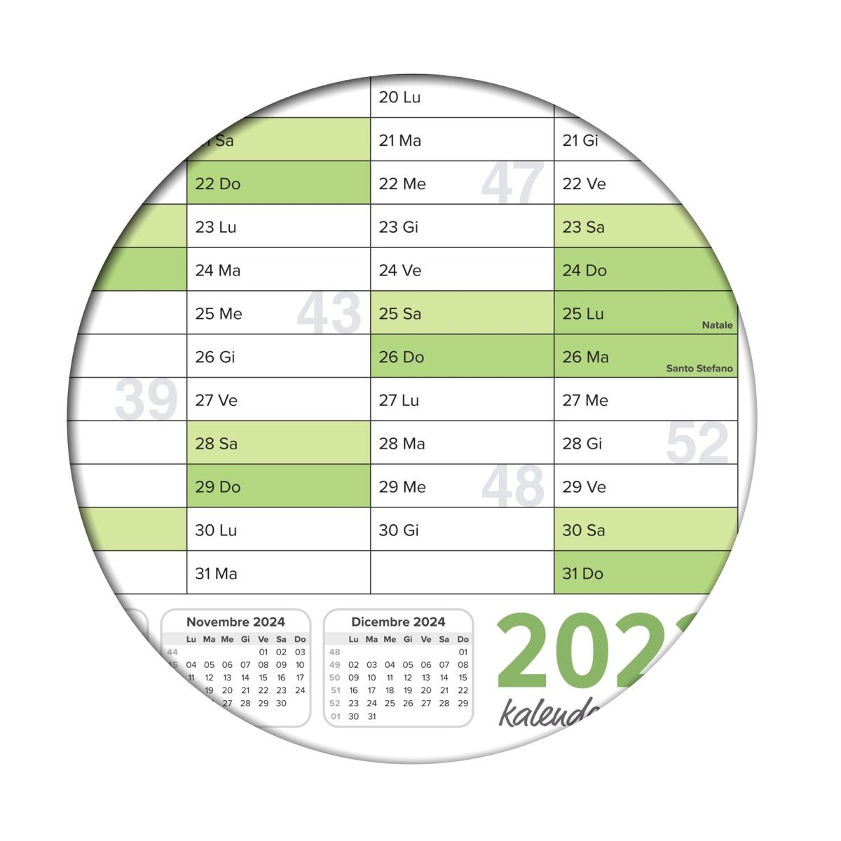 - L'intero anno con 12 mesi nella panoramica per la perfetta pianificazione e organizzazione di tutti gli appuntamenti, ad esempio compleanni, vacanze e appuntamenti dal medico, ecc. Con i fine settimana evidenziati a colori.