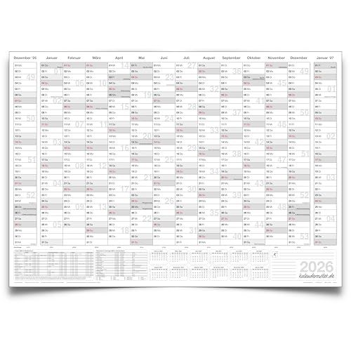 Kalenderoutlet Din B1 Jahresplaner Kalender 2026 mit 14 Monaten Übersicht Jahresplaner grau Format: 100,0x70,0cm Wandplaner, Jahreskalender, Kalender 2026 - deutsche Sprache