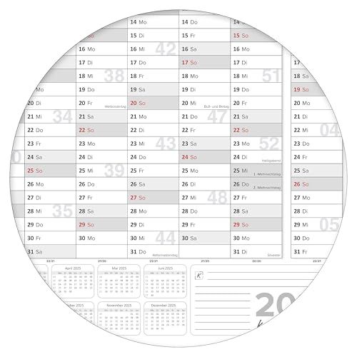 Die dezente graue Farbgestaltung fügt sich harmonisch in jede Umgebung ein – ob Büro, Homeoffice oder Wohnbereich. Der Wandkalender wird gerollt geliefert, sodass er ohne Falten sofort verwendet werden kann.